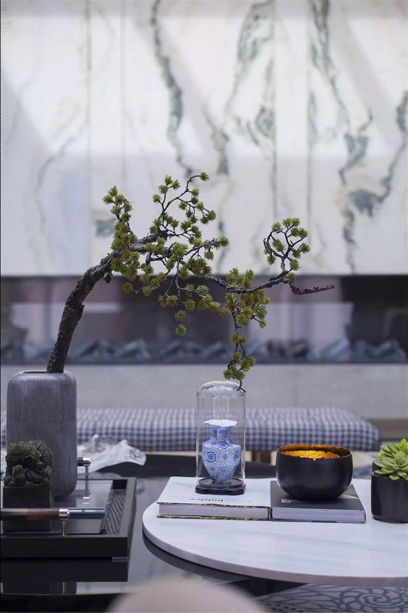 邱德光對中國文化與生活美學(xué)情有獨鐘?!拔覀儗⒅袊幕某橄蟊磉_(dá),僅僅空間、色彩或材質(zhì)詮釋意境”邱德光說,中國文化是以自然為主,如園頂層就是在這樣的預(yù)想中呈現(xiàn)出來。因建筑本身優(yōu)質(zhì)的庭院和室內(nèi)凈高4米5的尺度,邱德光動了“把風(fēng)景搬進家”的念頭,執(zhí)意說服甲方在開了頂窗,把這種“念頭”落實在空間里,帶來遠(yuǎn)比想象中更寬闊的空間感受。